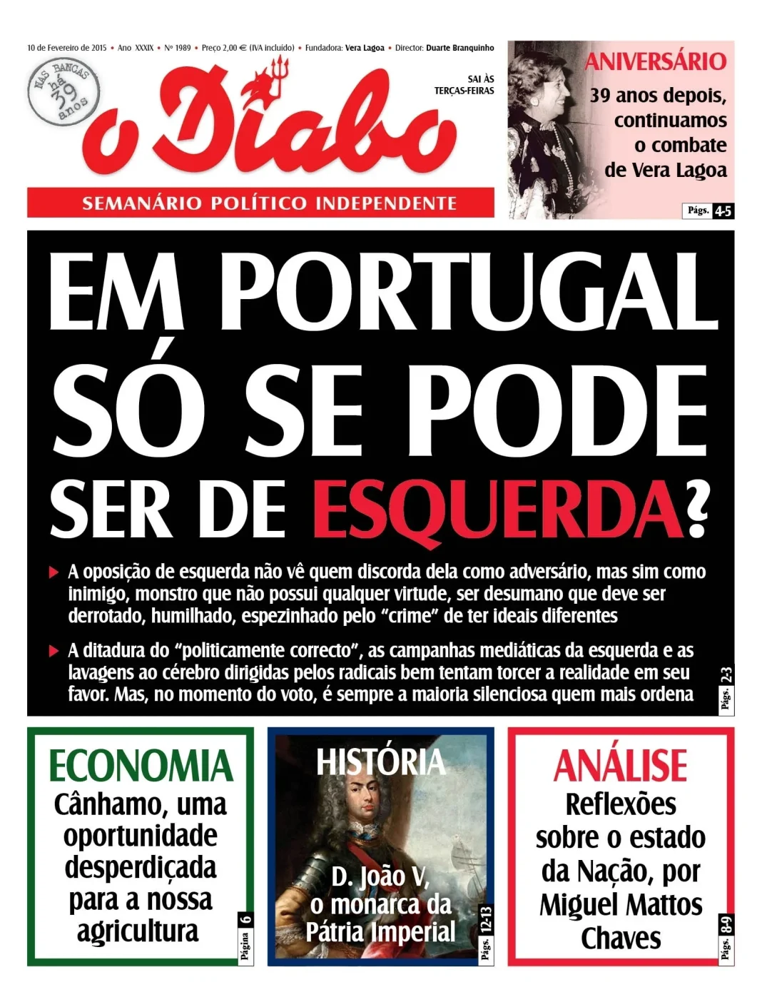 Capa Edição de 10 de Fevereiro de 2015 By Jornal O DIABO 09/02/2015 0 3171 Compartilhado FacebookTwitterPinterestWhatsApp Jornal O DIABO Compartilhado FacebookTwitterPinterestWhatsApp Artigo anteriorPorque devemos chamar-nos cristãosPróximo artigoCânhamo: Serviu para as caravelas mas não serve para os nossos carros? - Advertisement - - Advertisement - Últimos artigos O Lado Invisível do SNS: Quando uma Cama Vazia Decide Quem Vive e Quem Espera 16/04/2026 Concentrar para Salvar : A Nova Geografia da Neonatologia 16/04/2026 Política Migratória: Do Facilitismo à Correção 10/04/2026 A coreografia do medo e a engenharia da obediência 01/04/2026 A alternativa nuclear 27/03/2026