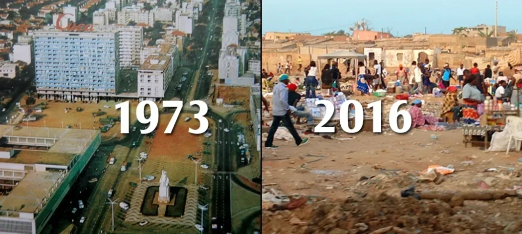 E foi esta Angola em plena pujança social e financeira, não dependente do petróleo, que os arautos da “descolonização exemplar” encontraram e que quarenta anos depois é considerado um dos países mais pobres de África (independentemente das riquezas naturais que possui e de que dispõe), e com um dos maiores índices de mortalidade do mundo, sem estradas, sem agricultura, sem saúde, sem educação, sem estratégia e sem economia, dependente apenas do “ouro preto” (enquanto for ouro), que para conseguir empréstimos no exterior tem que “hipotecar” território nacional, agora sim à laia de “colónia” de deixar qualquer angolano de “olhos em bico”.