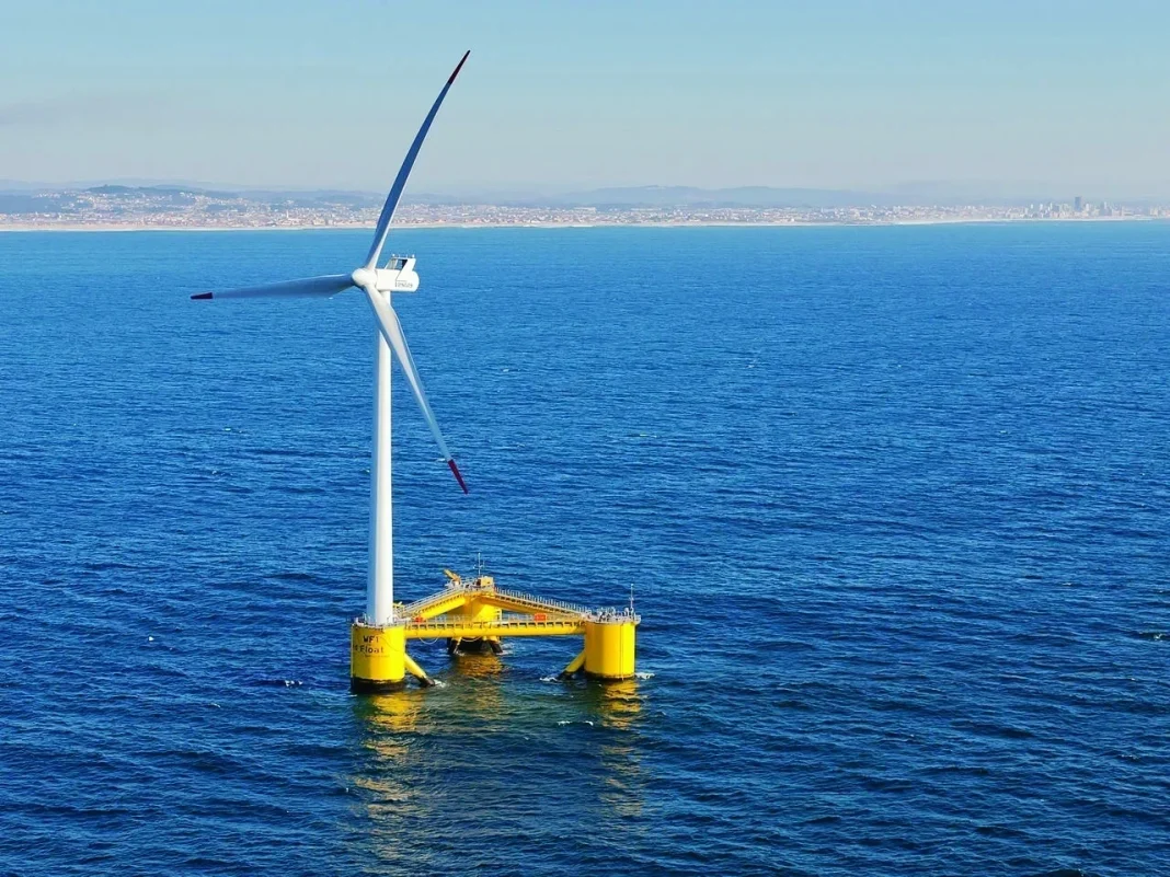 O “WindFloat” é uma tecnologia semi-submersível, semelhante a uma plataforma petrolífera com três pilares, sendo que num deles é instalada a torre eólica, com uma turbina.