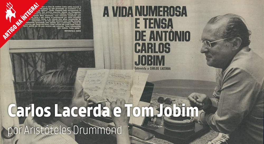 A segunda conversa-entrevista de Lacerda foi com o então jovem Tom Jobim. Esta foi de muitas horas. Jobim disse que as suas maiores influências foram Ary Barroso – o autor de “Aquarela do Brasil” – e os poetas Carlos Drummond de Andrade e Raul de Leoni. Nascido numa alta classe média do Rio, de origem no Sul por parte do pai, sendo a mãe educadora e fundadora de um colégio de referência no Rio.